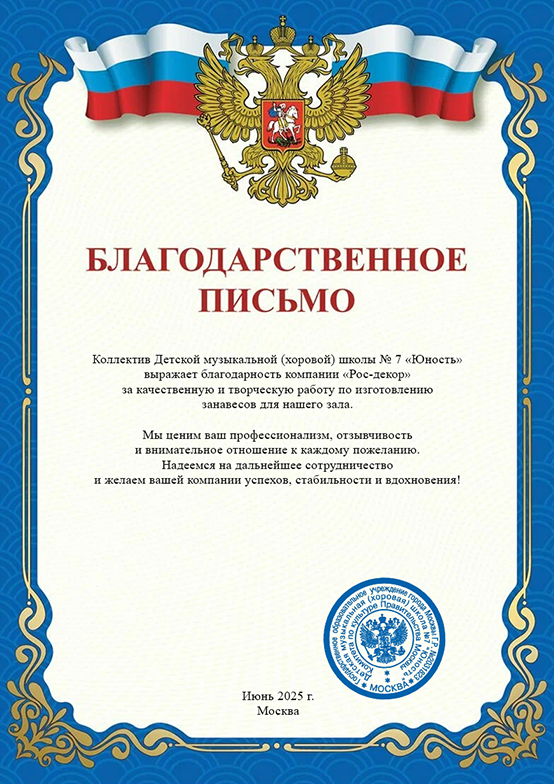 Занавес потрясающий. Большое спасибо! Теперь мы Ваши постоянные клиенты. Весь коллектив в